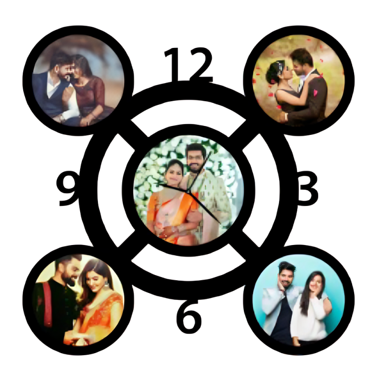 This customizable wooden clock offers a unique and heartfelt way to display your favorite memories while keeping track of time. Crafted from high-quality Medium Density Fiberboard (MDF) wood, this functional piece doubles as a stunning photo collage, featuring multiple square frames integrated into the design around the central clock mechanism.