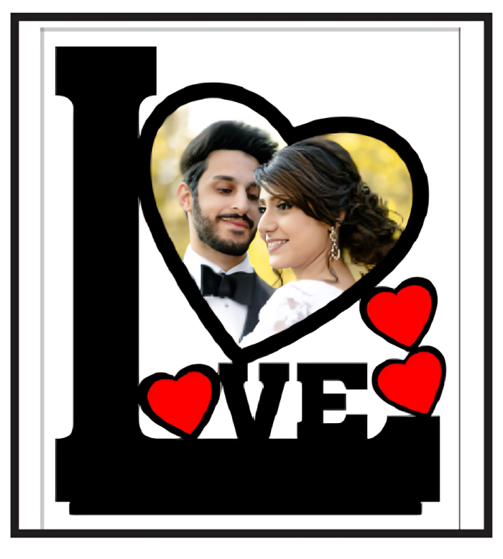 Custom wooden photo frame with loving design.